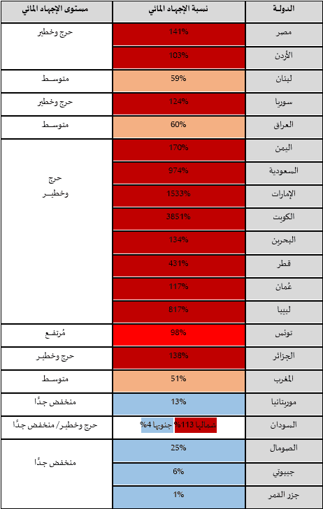 فبالنظر للجدول السابق، نلاحظ أكثر الدول تأثرًا هي دولٌ تجاوزتْ الحدود البيئية الآمنة، وتواجهُ خطرًا مائيًا وجوديًا، خاصًة أن معظمَها يعتمد على موارد غير متجددةٍ أو على مياهٍ عابرةٍ للحدود، ما يجعلها تحت ضغوطٍ سياسيةٍ واقتصاديةٍ متعددةٍ، بينما الدول التي تُصنف وفقًا للمؤشر من متوسطٍ إلى مرتفعٍ، هذه الدول لا تزالُ تمتلكُ مواردَ قابلةً للإدارة، لكنها تواجهُ خطرًا صاعدًا إذا لم تُطوِّر تقنياتٍ إدارة المياه وتضبطْ أنماطَ الاستهلاك الزراعي والصناعي. في سياق ذلك، وبالرغم من انخفاض الضغط على المياه من قِبَل بعض الدول، لكنها تعاني من ضعْفٍ مؤسسيٍ وغيابِ البنية التحتية، مما يجعلُ وفْرةَ المياه غير مستثمَرةٍ اقتصاديًا وتنمويًا.