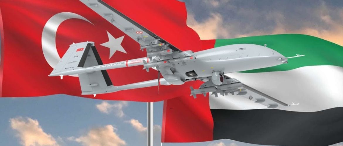 شهد التعاون التركي–الإماراتي في مجال الطائرات المسيّرة تطورًا ملحوظًا، حيث وقّعت الإمارات في عام 2023 عقدًا شاملًا مع شركة بايكار التركية لشراء 120 طائرةً من طراز بيرقدار TB2، تمَّ تسليم أكثر من 20 طائرة منها خلال نفس العام، كما عززت أبو ظبي قدراتها الجوية عبر استلامِ أولِ طائرةِ بيرقدار أقنجي في ديسمبر 2024، لتنضمَّ إلى قائمةٍ تضم 12 دولة تستخدم هذا الطراز المتقدم بقدرات تشمل التحليق على ارتفاع 40,000 قدم، وسرعة 250 عقدة، وحمولة أسلحة تصل إلى 1,500 كجم مع أنظمة توجيه متطورة.[15][16]