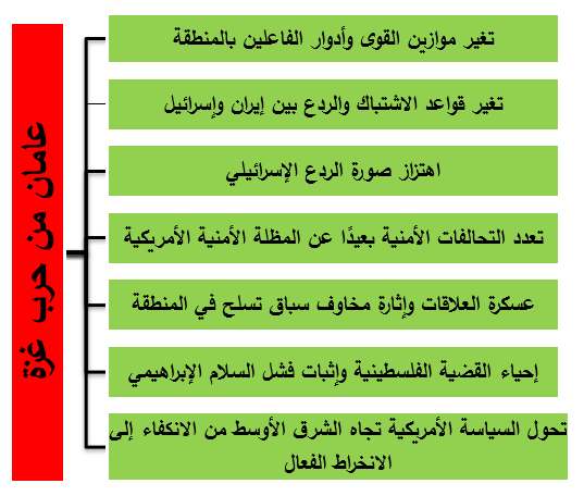ومن ثم؛ يمكن القول أن حرب غزة أدت إلى تغير موازين القوى في الشرق الأوسط؛ بمعنى أنه كان هناك رابحين وخاسرين في المنطقة، إذ بينما تراجع النفوذ الإيراني والروسي كفاعلين في المنطقة، برز المحور الأمريكي- الإسرائيلي، بإعتباره الطرف الإقليمي الأكثر قوةً وهيمنةً.